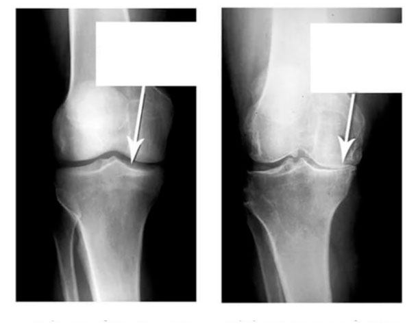 შეხედეთ ამ სურათებს, ხედავთ, რომ მარჯვენა სურათზე არ არის სახსრის სივრცე, ძვლები ერთმანეთს ერევა, რაც იწვევს ძლიერ ტკივილს. და ამ პროცესის შეჩერება ძალიან რთულია! ორიოდე წელიწადში ადამიანი გახდება ინვალიდი და ვერ შეძლებს თავის მოვლას.